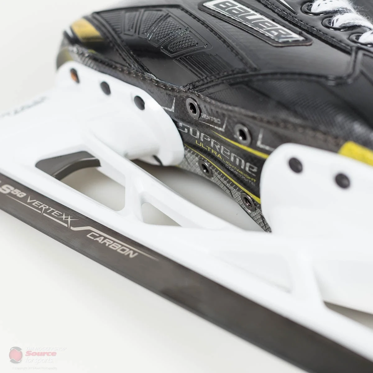 The holder that allows the 2S Pro goalie hockey skate to have this ability to get the goalies ankle as low as possible to the ice is holding new steel for 2018. The new steel is the carbon-coated LS5 stainless steel. This new steel holds an edge longer as well as primarily preventing corrosion from affecting your blades as much as an uncoated set of blades. The LS5 steel is also the same height as the LS3 G+ right out of the box, so those goalies looking for a taller package do not need to look into the aftermarket.