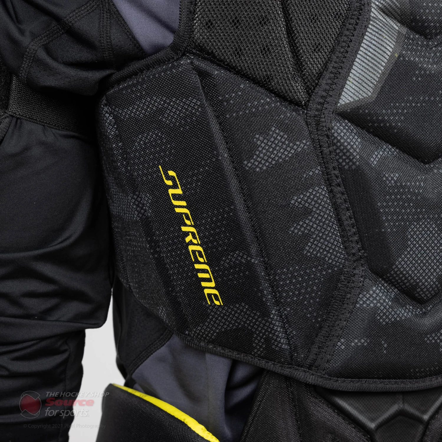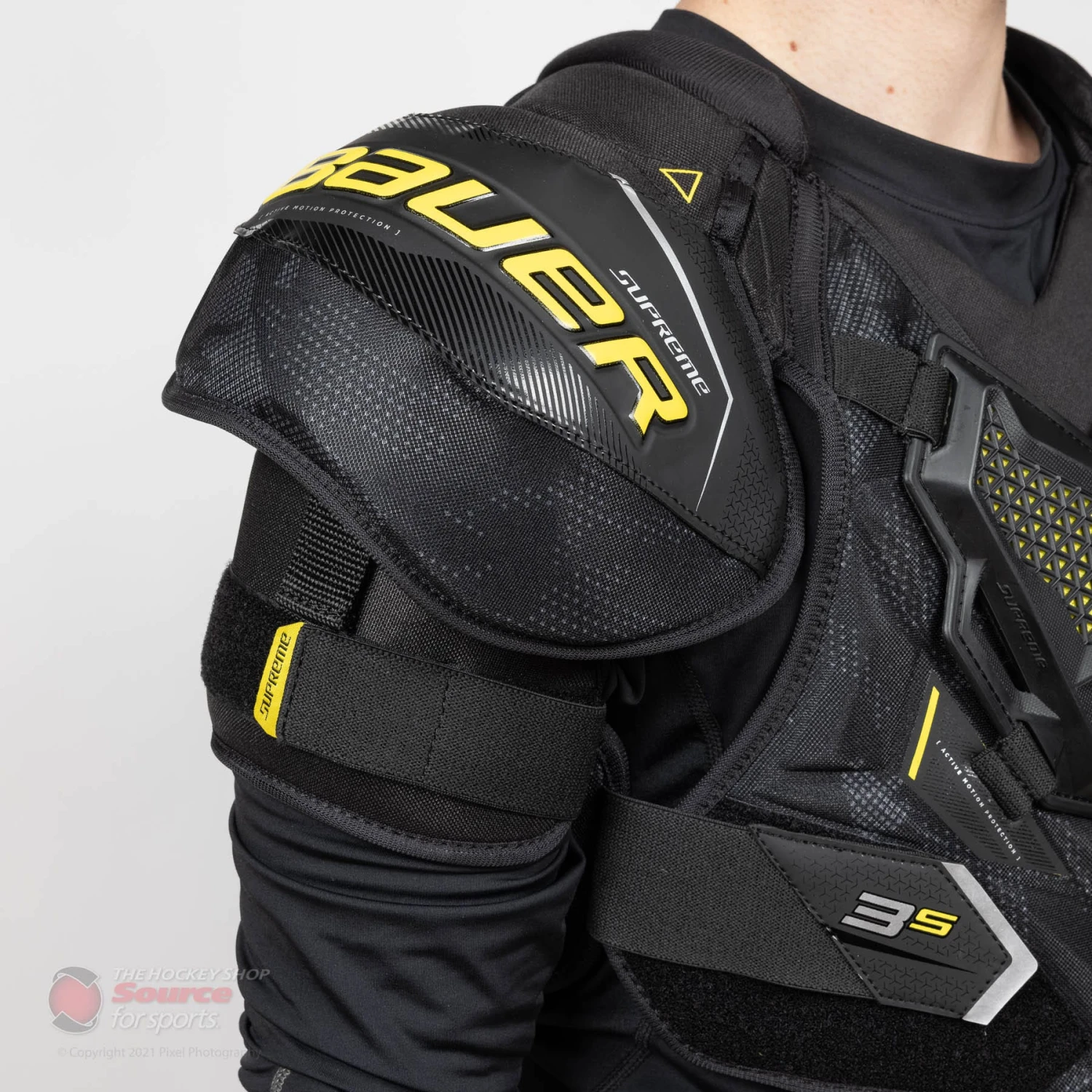 The Supreme 3S shoulder pad utilizes the same Active Motion Protection(AMP) technology in the shoulder caps as the UltraSonic. Bauer has specifically designed the AMP technology to allow the shoulder cap to move with you while still maintaining a low profile cap.