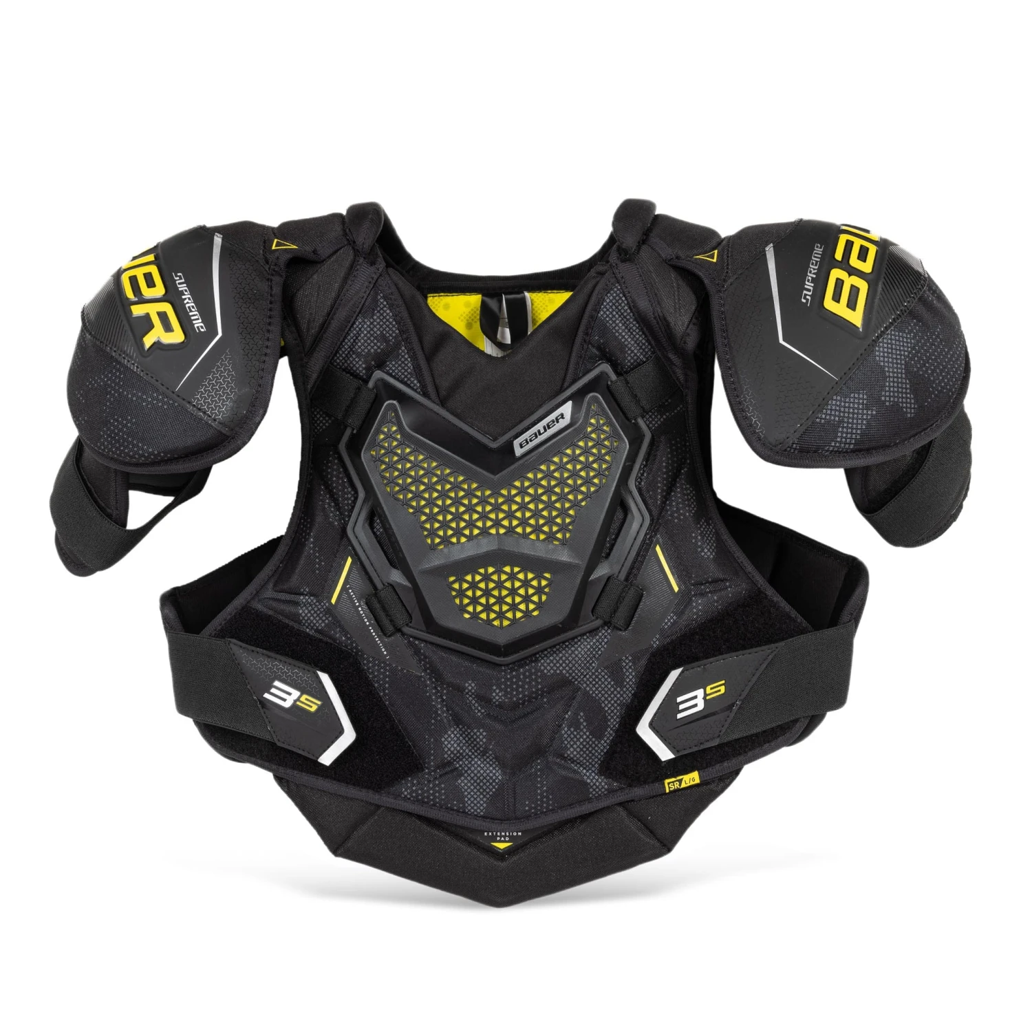 The Bauer Supreme 3S SR Hockey Shoulder Pads target the competitive players. This shoulder takes many features from the UltraSonic and 3S pro and puts them in a more affordable package for the competitive player. The AMP Shoulder Cap, ADAPTIV Skin Sternum, and full rib wrap coverage are key features from the higher end models that are equipped on the 3S. Finally, the tonal camo pattern look in combination with a premium graphic treatment will catch your eye right off the shelf.