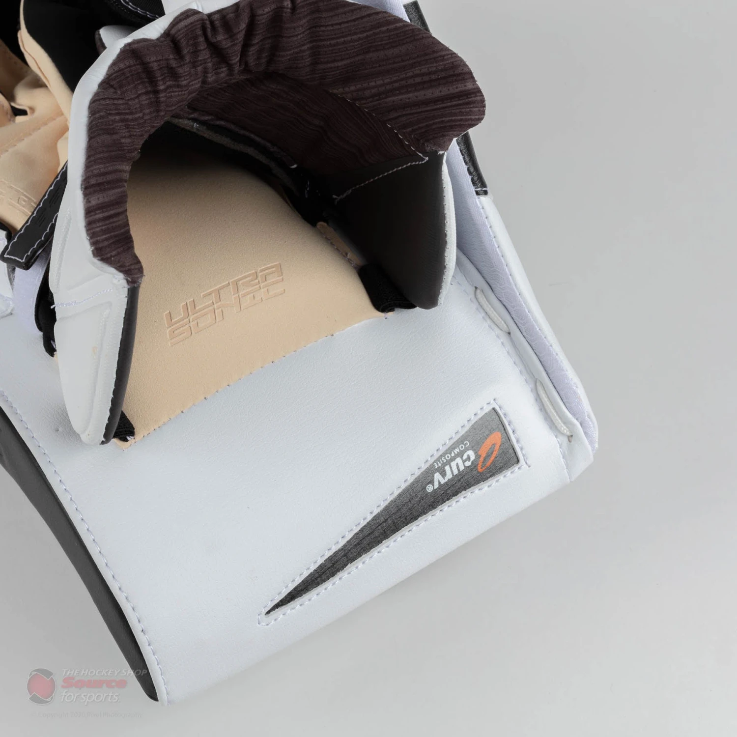 The internal construction of the Bauer UltraSonic blocker has been brought along from previous generations of Bauer goalie equipment, and features a CURV Composite blocker board with control foam. The board itself is not quite as thin as the Vapor line, but still provides excellent rebound control and durability. Combined with the C.O.R.Tech skin, the Supreme blocker is designed to push rebounds further away.