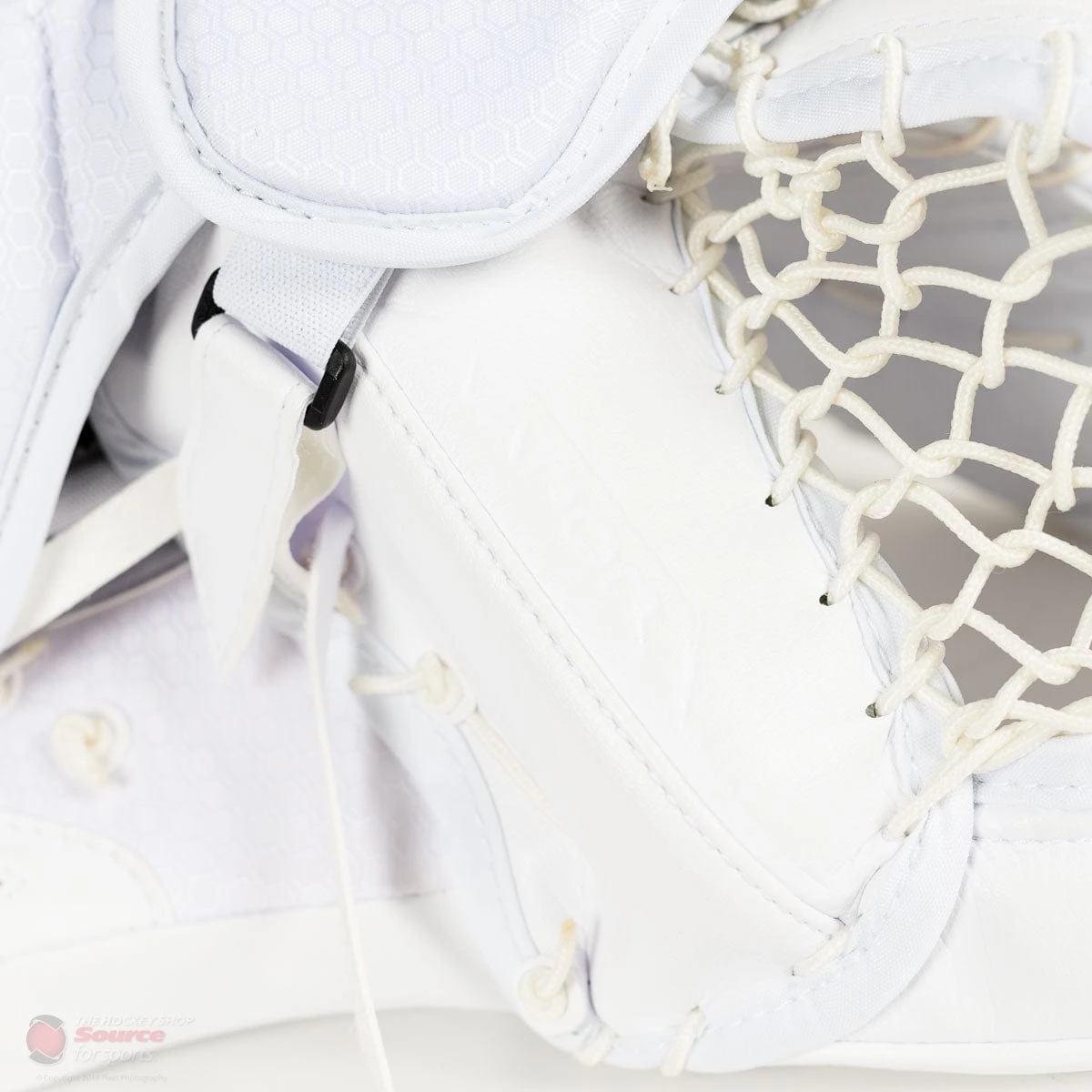 The Bauer Vapor 2X Pro Catch Glove makes it clear that Bauer is looking to not only improve the pads, but rather the whole set. Staying comfortable with a one piece glove and 60-degree break angle, adding a max depth pocket, this glove is comfortable to use right off the shelf. The new Catch Grip with ThermoCore creates a grip inside the glove to prevent slipping, essentially eliminating the need for inner gloves.