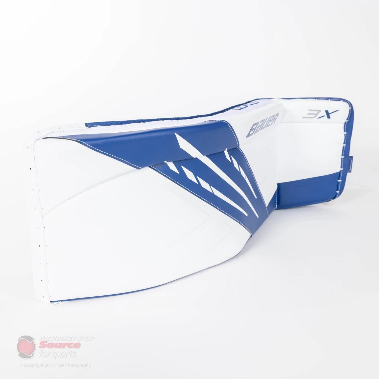The 3X line comes stock in all White, all Black, White/Black, White/Blue, White/Navy and White/Red. The 3X Senior Leg Pads are available in sizes XS (32″) thru XL (36″).