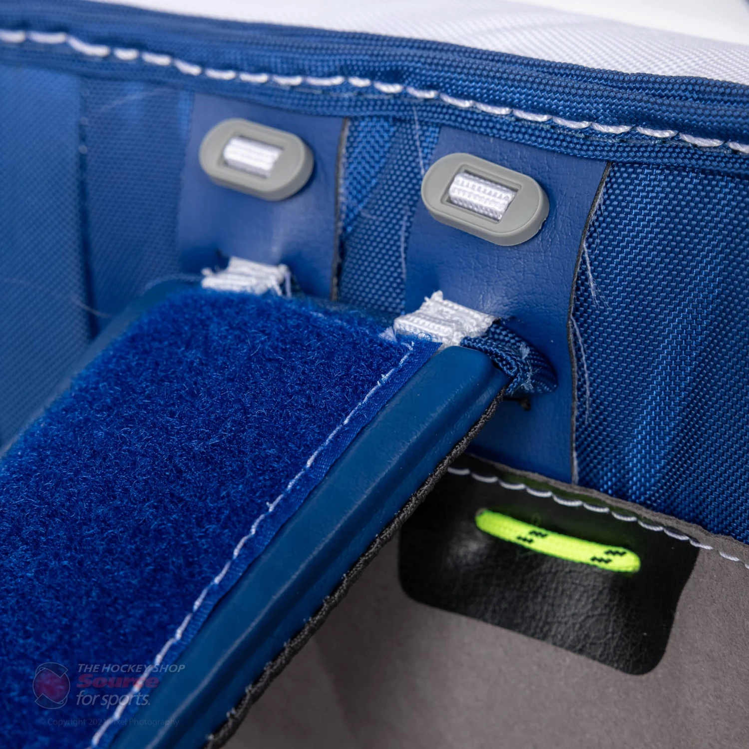 The pads get the same StabiliFlex knee block seen on the Hyperlite pad. First seen in the Ultrasonic line, this design creates an ultra stiff knee block that’s built right into the core of the pad. There are many advantages to this design mainly that the goalie is able to drive straight through the knee block into the butterfly without losing any energy in the process.