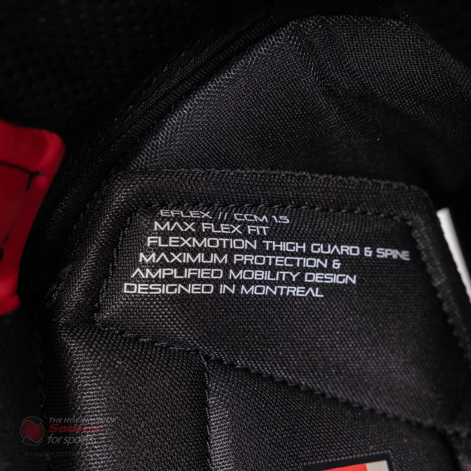 The CCM 1.5 Youth goalie pant features a wider, barrel fit with Max Flex Fit Technology. The fit profile of the Pro makes tucking the chest protector easy, though it works just as well untucked. Max Flex Fit technology refers to the flexible zones added in key areas, that allow the pant to be mobile while maintaining coverage.