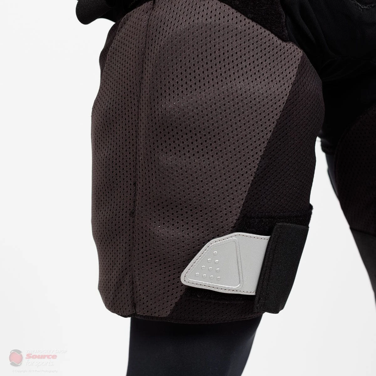 The spine protector features a molded PE foam and a CCM shield to protect against any impacts, slashes and crosschecks. The kidney guards also feature a removable and molded plastic insert with foam backings for comfort.