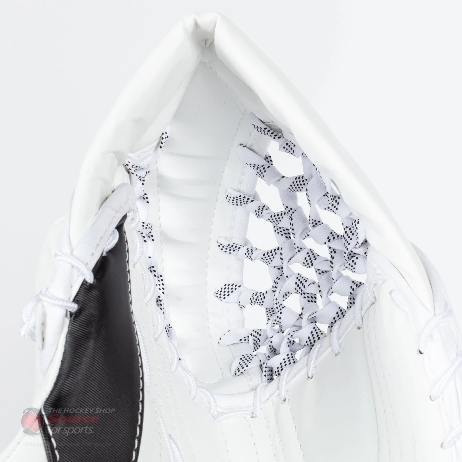 The Source for Sports Exclusive version of the CCM A1.5 goalie catcher features one change from the catalog model. The Source Exclusive A1.5 is a Single-Tee pocket with Skate Lace lacing, which is different from the double-tee with standard lacing catalog version. You also get access to custom colors that are exclusive to Source for Sports.