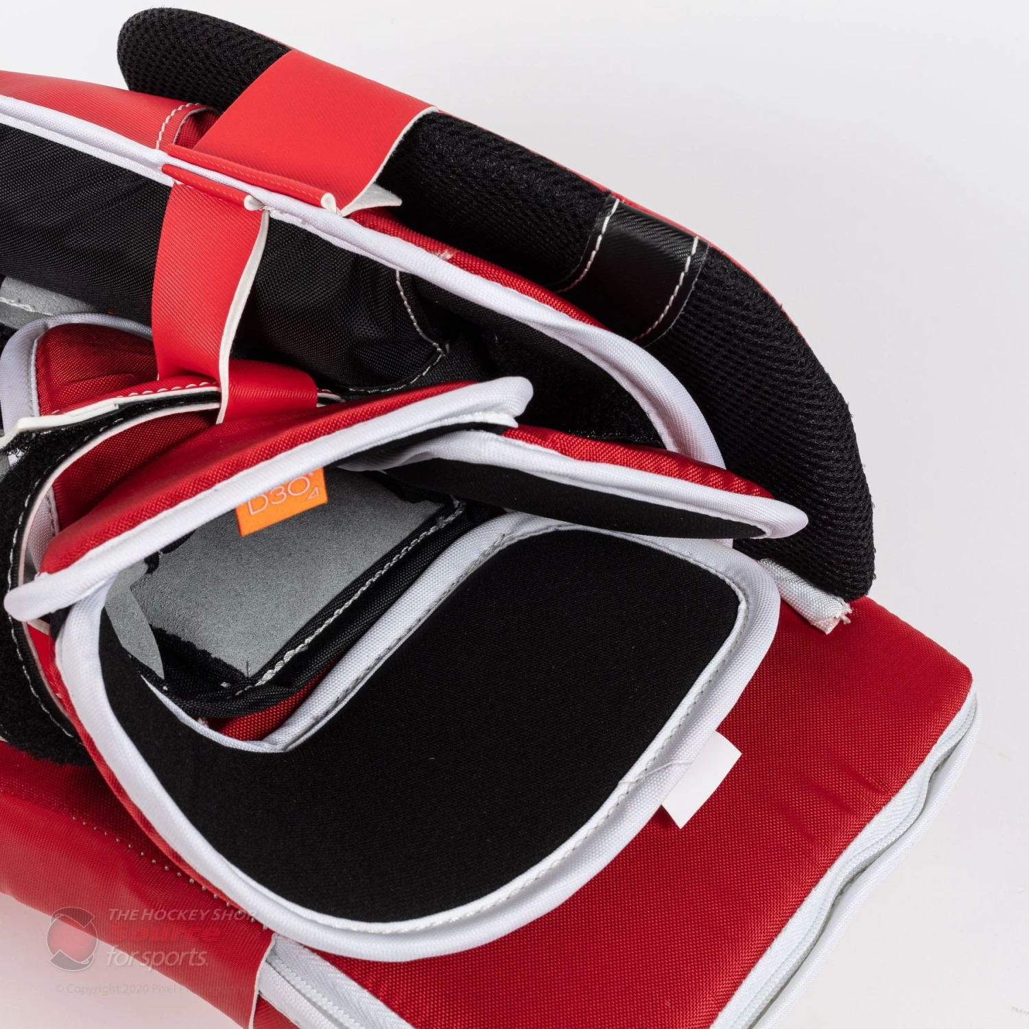 The Source for Sports Exclusive version of the CCM A1.9 goalie blocker features one change to the blocker from the catalog model. The Axis A1.9 Source Exclusive Blocker has been upgraded with D30 Index Finger Protection, which is not featured in the catalog version at all. You also get access to custom colors that are exclusive to Source for Sports.