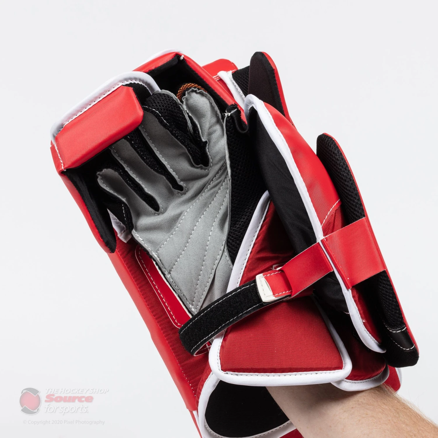 CCM’s adjustable 3-piece cuff on the AXIS A1.9 blocker provides you with the freedom of movement that is necessary to make those difficult blocker saves a little more manageable.