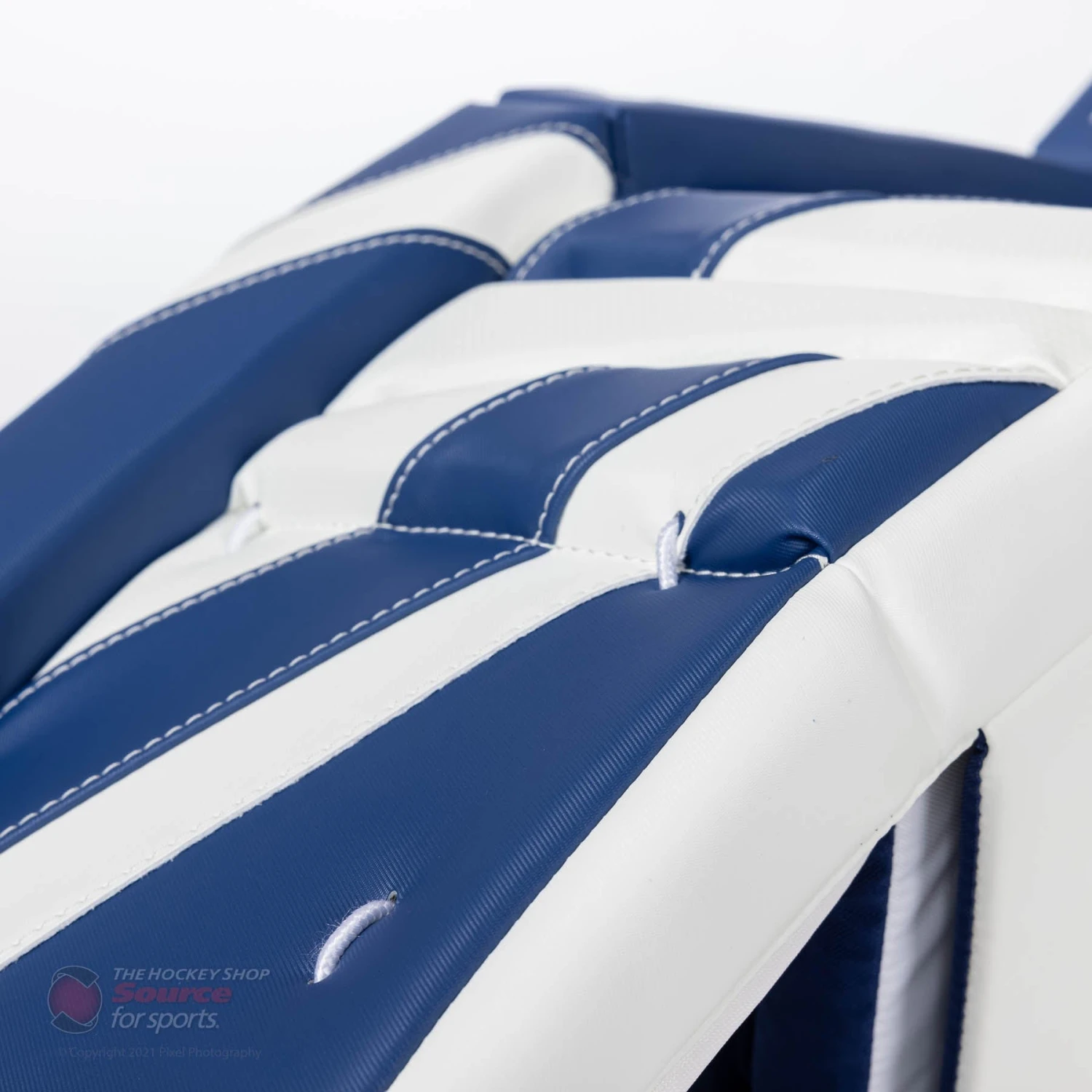 CCM uses recessed foam with a removable knee cradle wrap to allow customizability and comfort. This deep knee cradle is designed to help close the five hole and prevent you from falling off the knee stack, while still having unrestricted mobility.