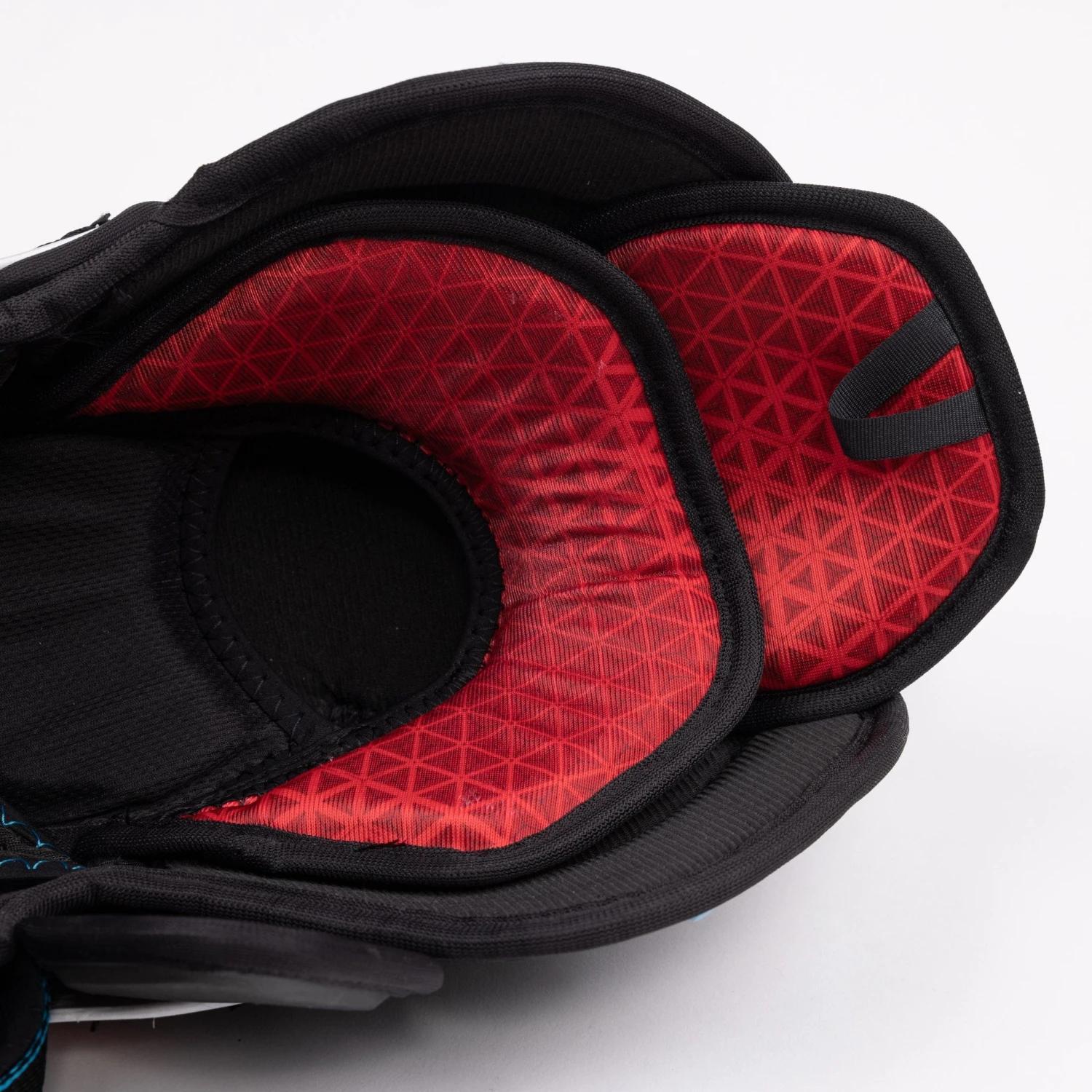 CCM’s next shift in focus for 2023 is in the new Jetspeed FT6 line. The Jetspeed FT6 gear puts emphasis on breathability and mobility, which means much of the new tech found in the gear will be light, discreet, and designed to keep you cool. The FT6 shin guards feature an Aer-Tec Suspension and Thermoregulation System, a floating compress-molded EVA foam calf guard, and an anticollapse X-frame.