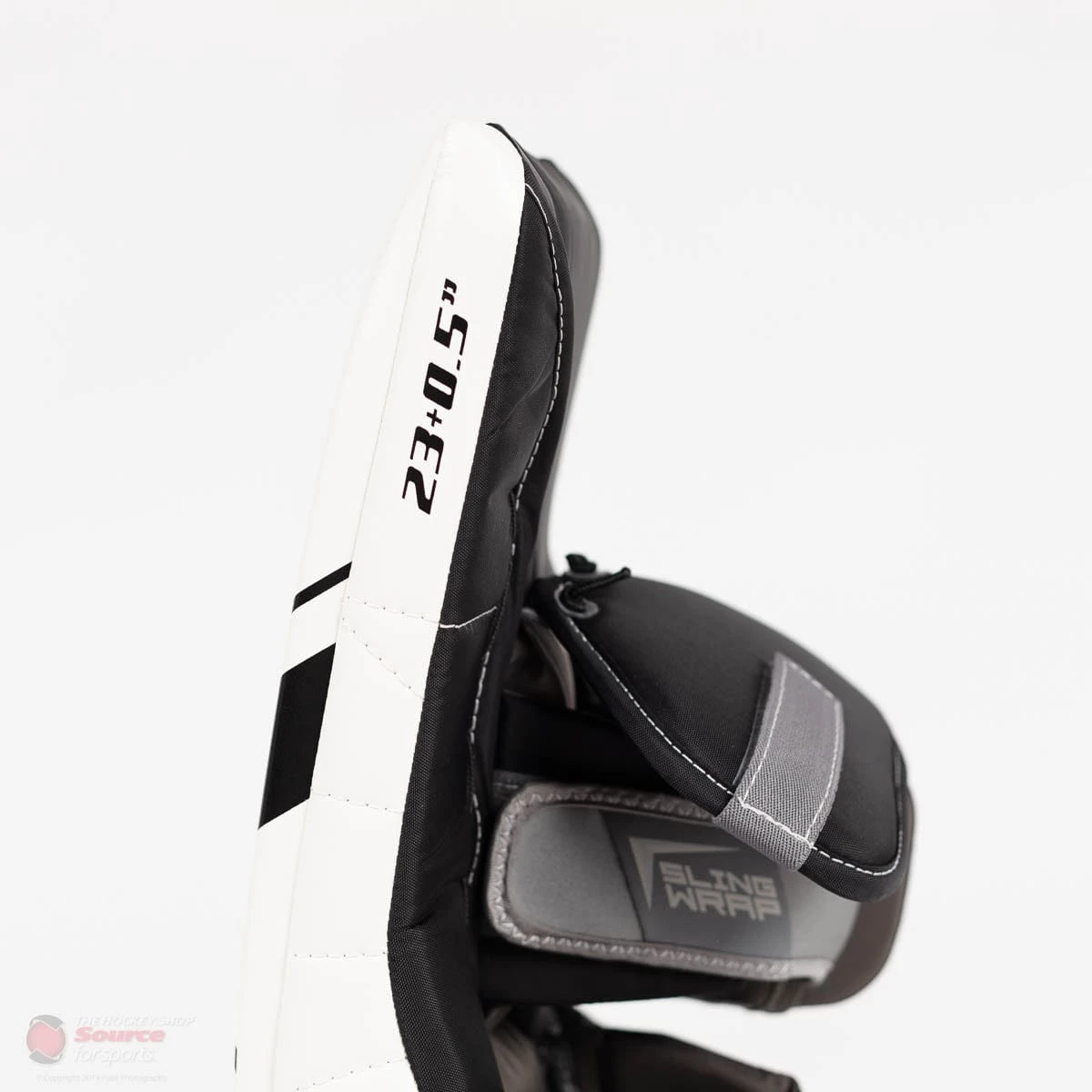 As well as the velcro straps these pads have, the also feature warriors Active Response Straps. These are elastics that replace the traditional toe ties that are on most goalie pads. These elastic straps, while being easier to put on than lace also stretch while the goalie tries to plant their skate on the ice, reducing stress on the knees and hips.