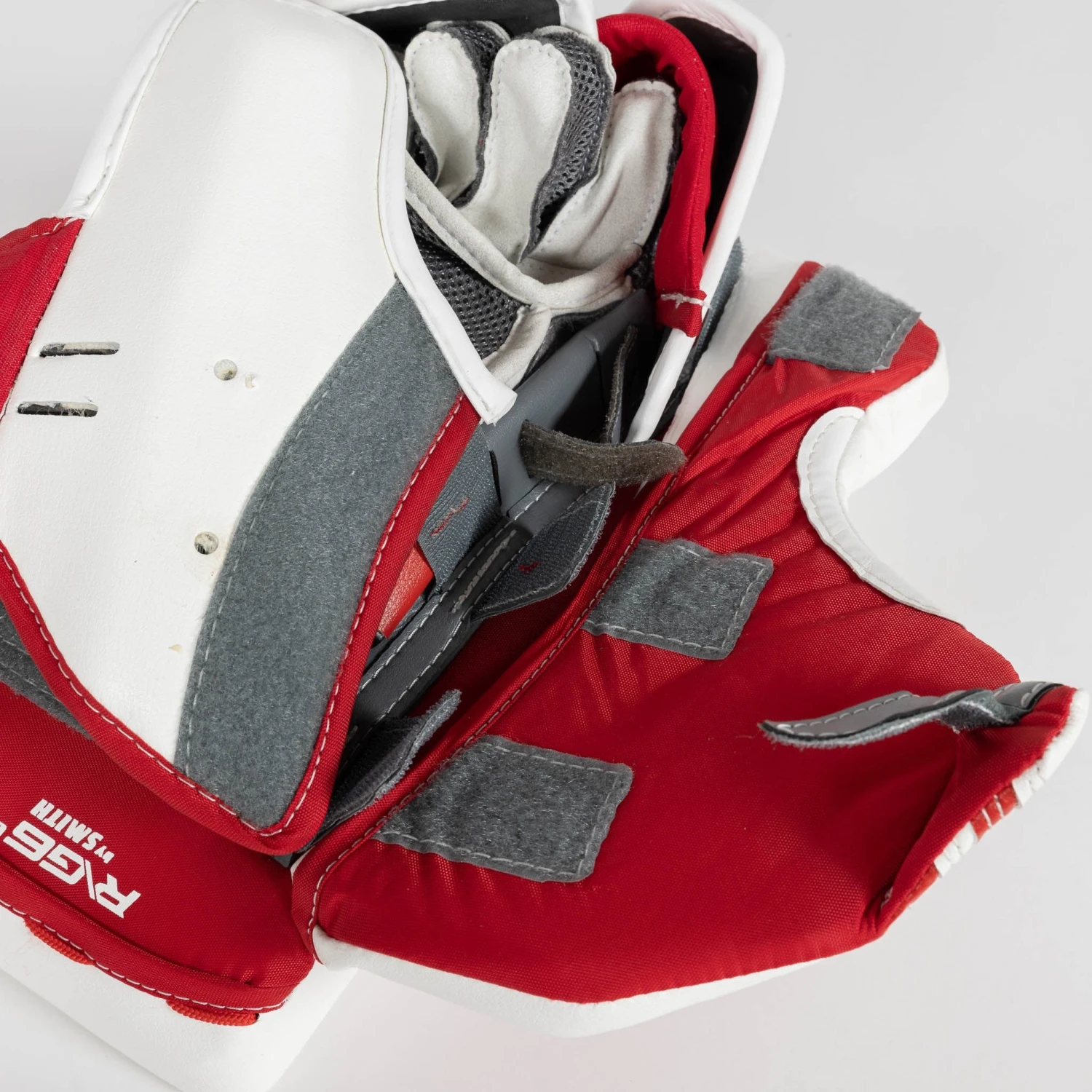Warrior’s HyperComp reinforcement has been added to the blocker and side hand. This reinforcement is made up of carbon fibre and is designed to enhance durability while helping a bit with rebound responsiveness. The side index finger protection is also adjustable, allowing you to get the best fit for your style.