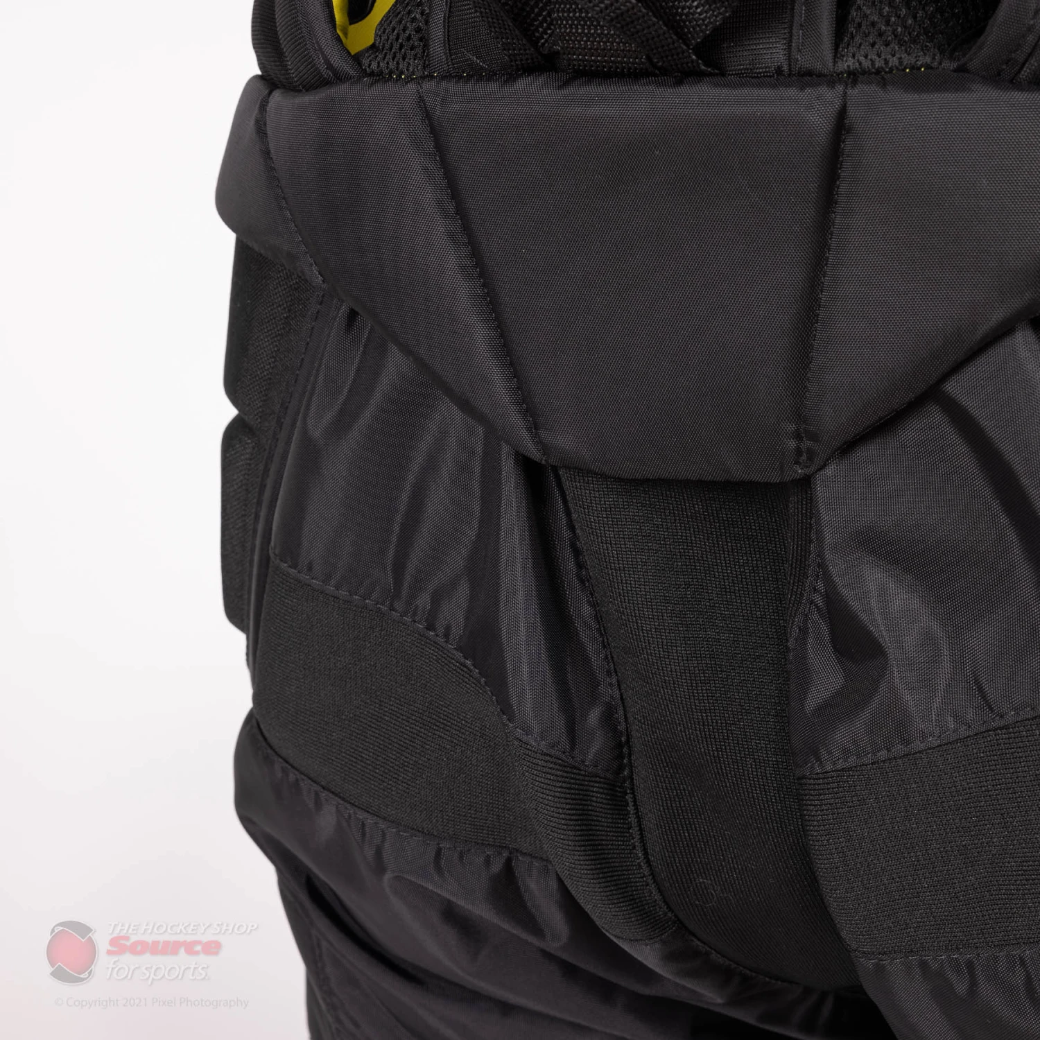 The Warrior Ritual X3 E+ SR Goalie Pants come in sizes S-XXL. For colors, the X3 E+ pant resembles the previous model, black on the outside with Light grey logos and volt lining on the inside.